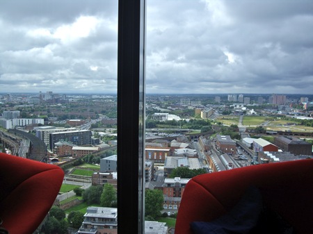 After a scarily fast ride on the lift, we were greeted by an incredibly friendly waitress and lead to our table – right-by-the-floor to ceiling windows, looking out over the city centre and Salford. The views were amazing, and after two years in this city it was fascinating to finally see it from above. The tea was served in mismatched vintage tea cups and pots, which seemed surprisingly twee and quirky in this place, and the sandwiches (they even took note of the “Attention! Vegetarian! Handle with care!” warning we issued when booking), scones and cake were lovely. I’m quite looking forward to taking any potential visitors there again (so I can eat cake while they’re distracted by the panorama. Ha!)