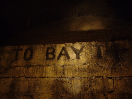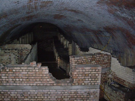 Swapping the heels for trainers, we moved on to the second part of our “Towers & Tunnels 2010” tour. A fairly large group of adventurous Mancunians had already gathered outside the Bridgewater Hall when we arrived, sporting wellies and carrying torches. Our tour guide gave us a quick introduction to the use of canals in Manchester and the importance of the Great Northern railway station: it used to be one of the largest goods exchange places in the country, with access to the underground canal and the railway to transport goods by water and land.