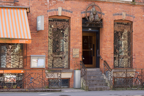 After the Bad Language session, we settled for a game of scrabble just round the corner at Nexus Art Cafe, which was packed with people sinking into sofas while eating cake and drinking tea. My kind of rock music festival. Having moved our armchairs to make room for Nexus’ faithful and utterly off-tune piano, we watched some of Ajimal’s set who happily alternated between his guitar and the piano. In combination with the still ongoing scrabble war, the arm chairs and the cozy atmosphere at Nexus, this made for a rather marvellous time. But even without scrabble and cake, he’s pretty good. You should listen.