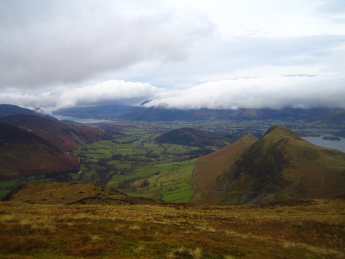 Thanks to my excellent map reading skills, the missing compass and zero visibility we only got lost twice on the route, which caused me to first panic quite a bit, then feel like kissing the path once we found it after an hour of dragging ourselves up a hill. As we got to the top at Maiden Moor, the clouds cleared all of a sudden and we got some amazing views over the valley west of the fells. The last part of the walk was downhill apart from the short ascend to Catbells, which offered some good views over the lake, but felt much less spectacular and heroic than our previous odyssey through the mist.