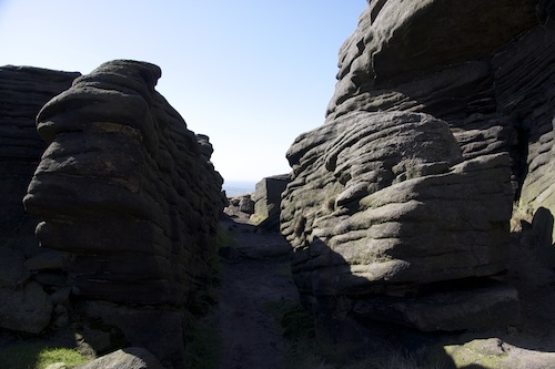 The walk up to Mill Hill which leads to Kinder Scout was… bleak. Brownish grass. Heather. A few rocks. Sheep. Streams. The usual. But as soon we had climbed up the rocky path of doom up to Sandy Heys I couldn’t stop talking about THE ROCKS. Rocks. Everywhere. Wind, rain, and thousands of years of the earth moving had shaped the gritstone into magnificent marshmallow-like layers and fascinating rock formations, some silently sitting on top of the hills in solitude, others gathering in large groups like crowds around the buskers on Market Street. I was stunned and amazed. Imagine Agent Cooper in Twin Peaks pointing out the impressive trees at his arrival to the town… but with rocks.