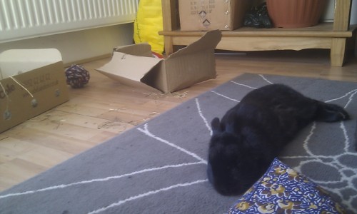 It’s been a while since I’ve written about life with our new lagomorphic housemate, so, in the light of current events – I just had a “aww look how awesome he is” chat with his soon-to-be pet sitter Lucy from Furry Feet Petcare – here’s an update of how Das Rabbit* is doing.